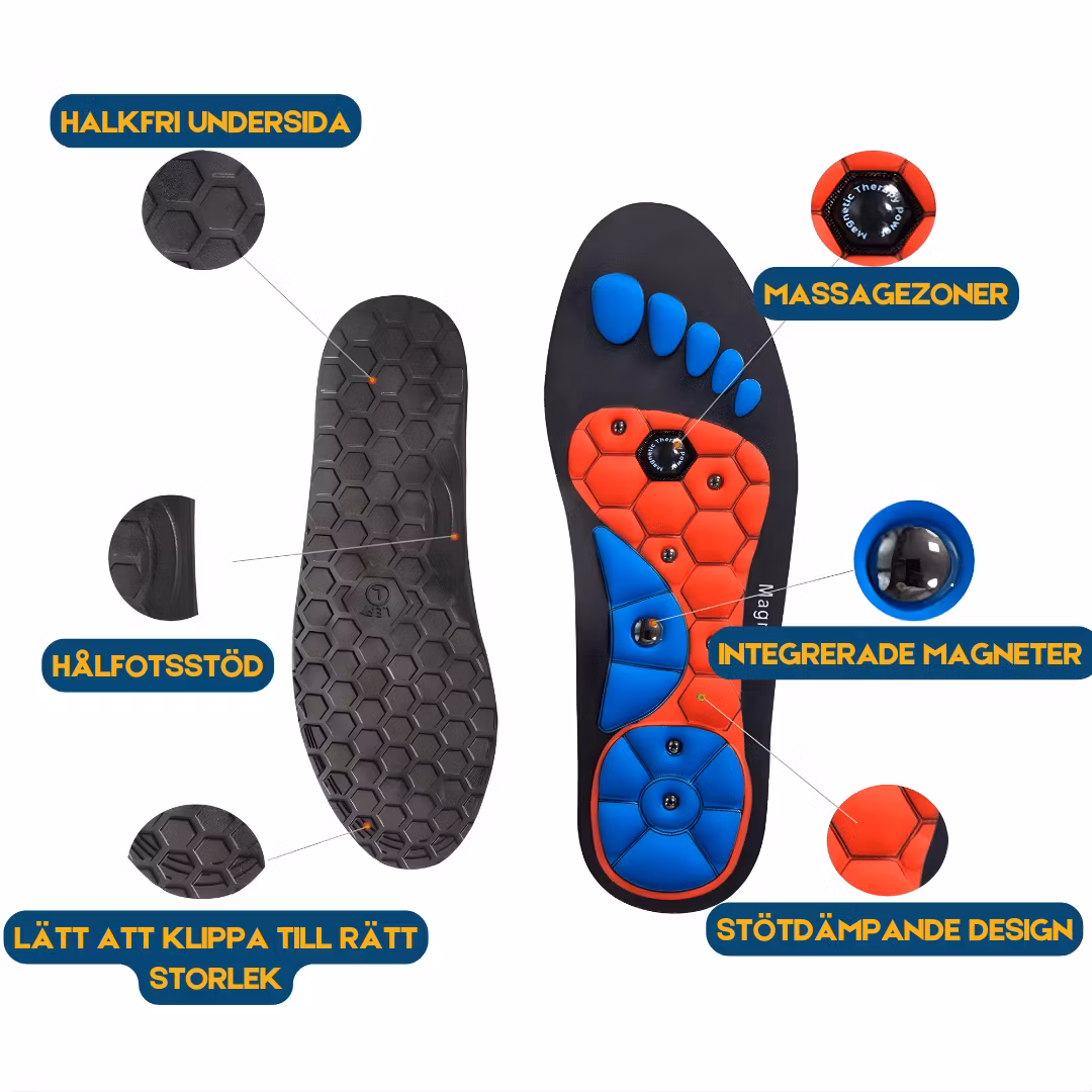 - Om du har på dig dem dagligen får du minimerad risk för smärta i fotvalv, fötter och ben.