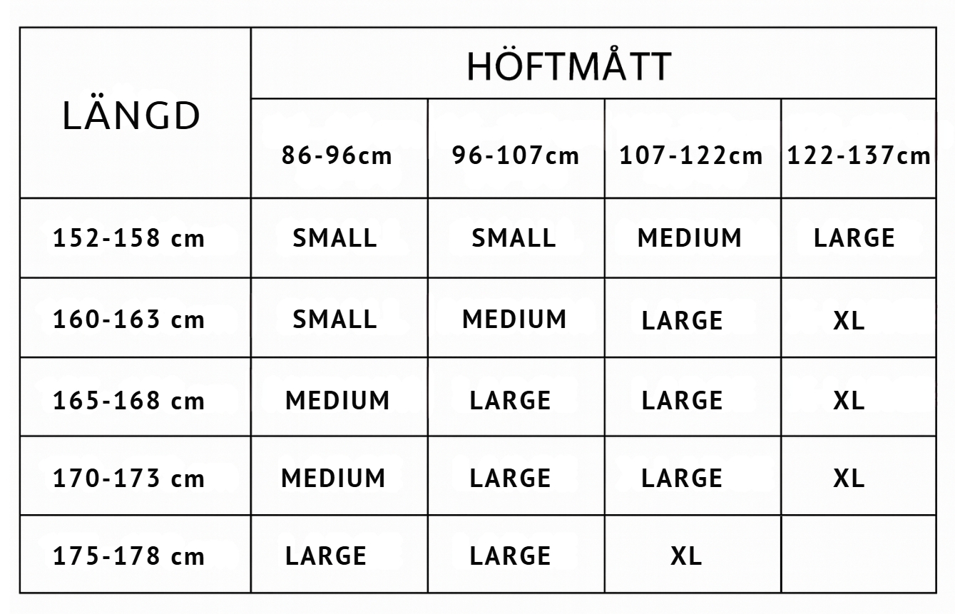 Värt att veta: Om du hamnar mellan två storlekar, välj den större. För små strumpbyxor översträcks, blir mer genomskinliga och går lättare sönder, medan en något större storlek ger jämnare passform och längre hållbarhet.